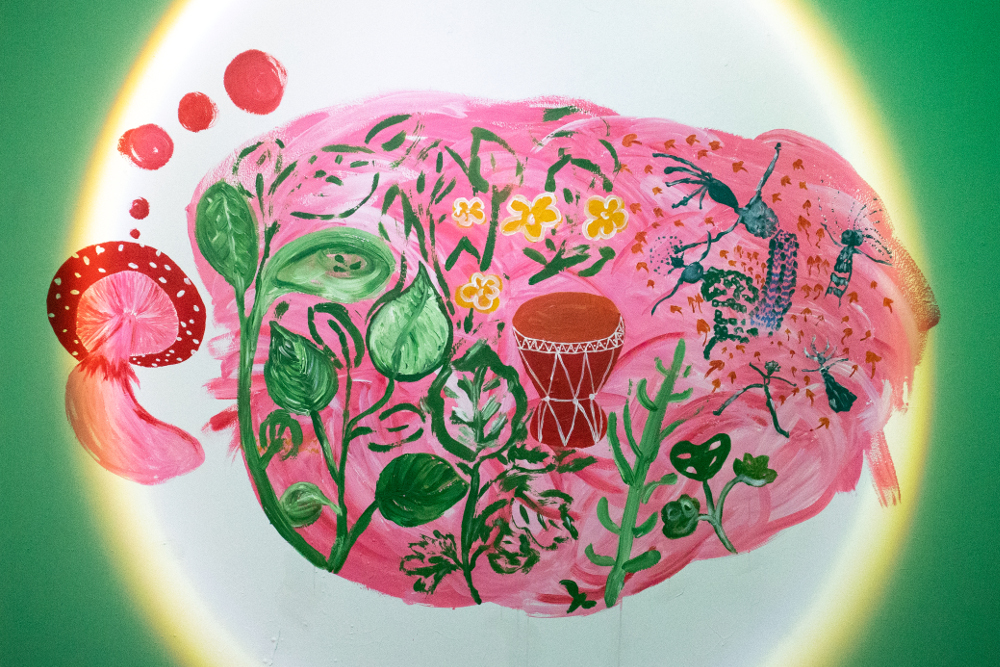 accompanied by a new mural painted by the artist exploring natural